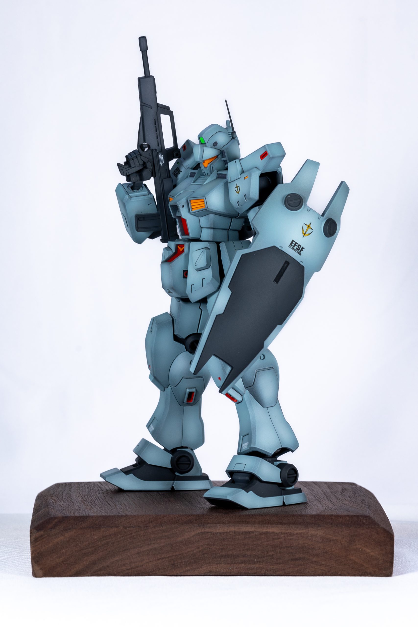 Using the HG GM Custom as the base, this model features shading effects, seamless treatment, and re-engraved panel lines. It has been finished in a retro style to faithfully recreate its appearance from the anime.