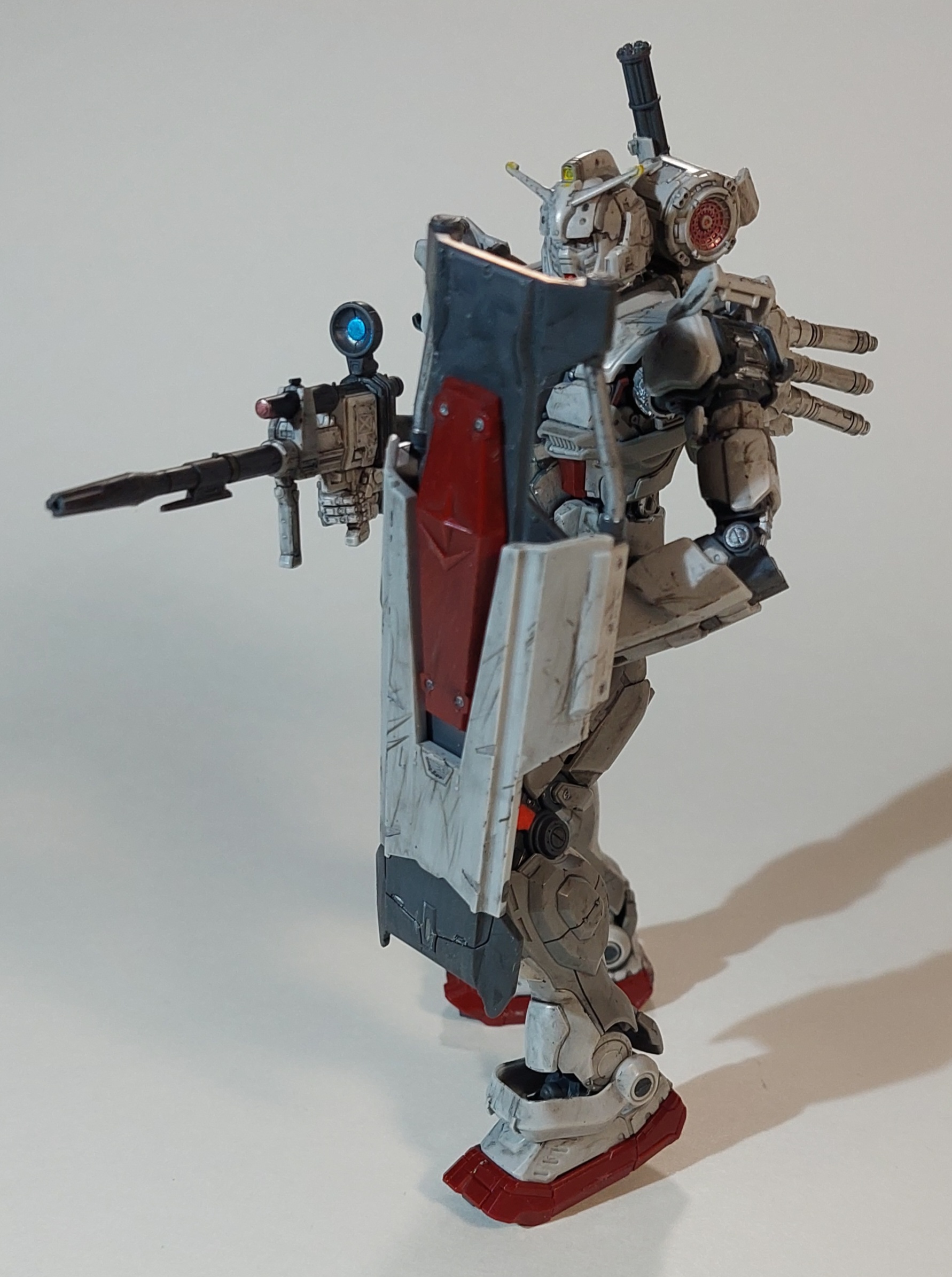 Gundam Requiem for Vengeance Rx-78. Once again, Bandai delivers an amazingly detailed kit packed into a tiny package. The newest rendition of the iconic mecha that started the Gundam. Extensive weathering was done to give this kit the feeling of being war torn and battle tested. As always – Bandai delivers an enjoyable build for modelers new and old.