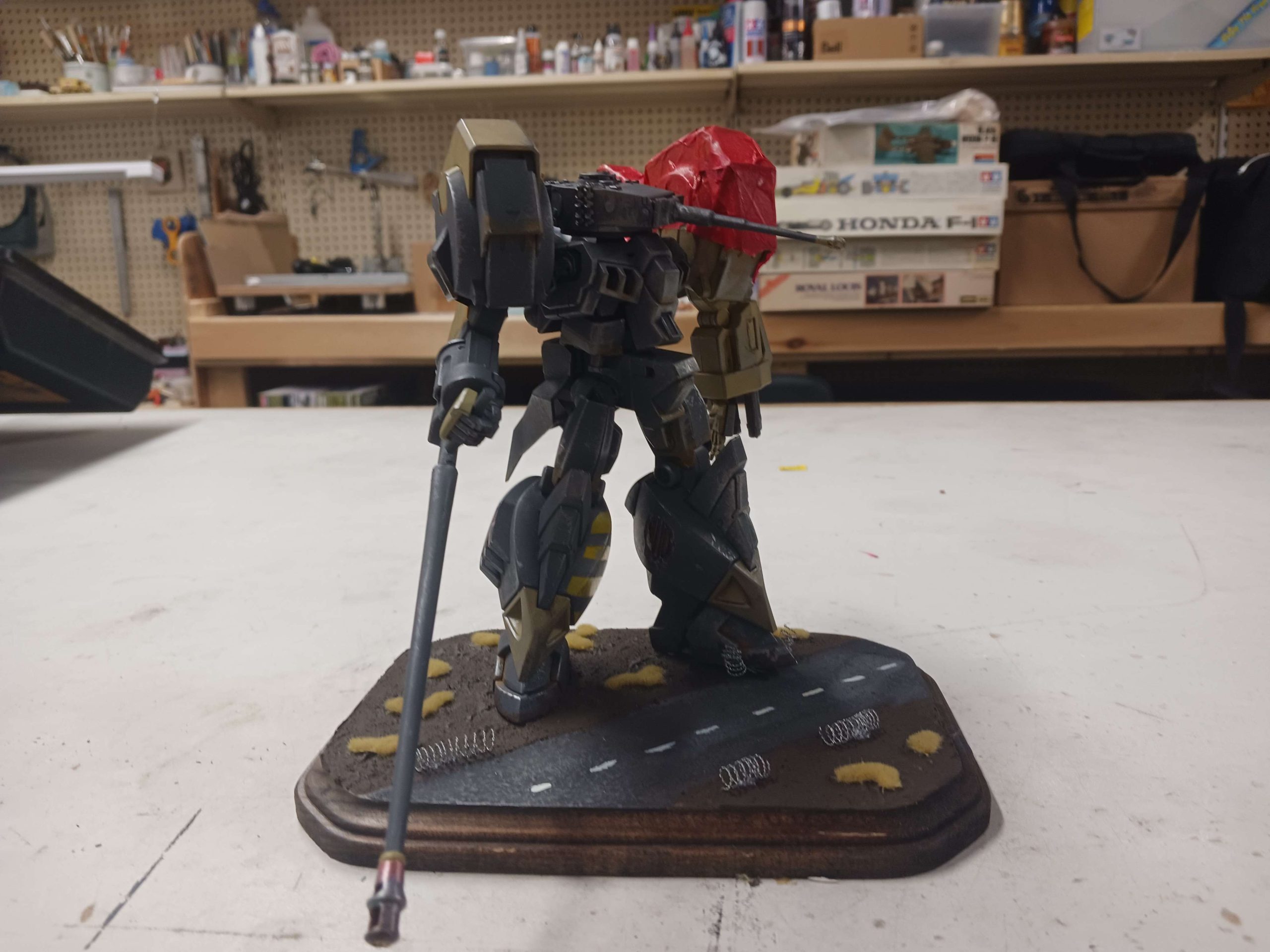 Used the Trumpeter 07244 German Tiger I Late Production WWII Tank 1/72 Scale Model Kit mixed in with the Alteisen mech by Bandai Spirits.