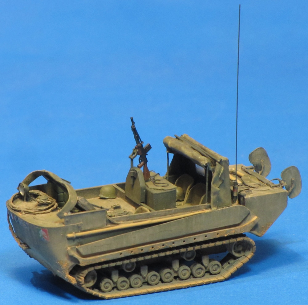 –scratchbuilt track skirts installed in open position, partially erected canvas tilt, machine gun mount and FM24/29 MG, details inside radiator well, rudders, steering tiller, boathook, towing eye, windscreen supports, radio shelf, headset and weather cover