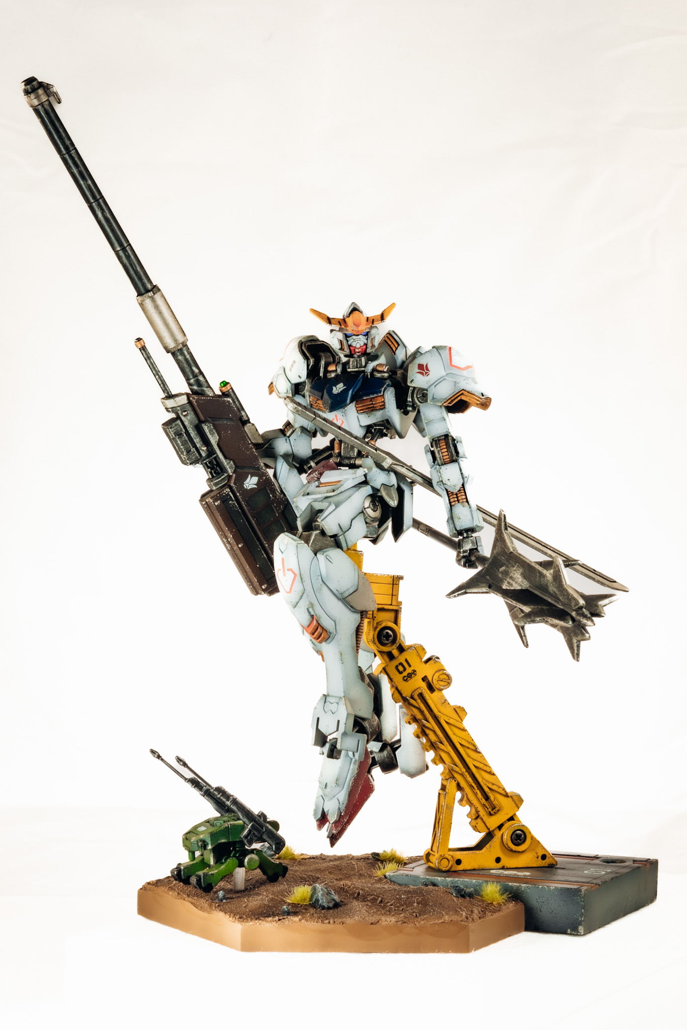 Bandai HG Barbatos, IBO Option Parts Set 1, Bandai 30mm Desert scene base.