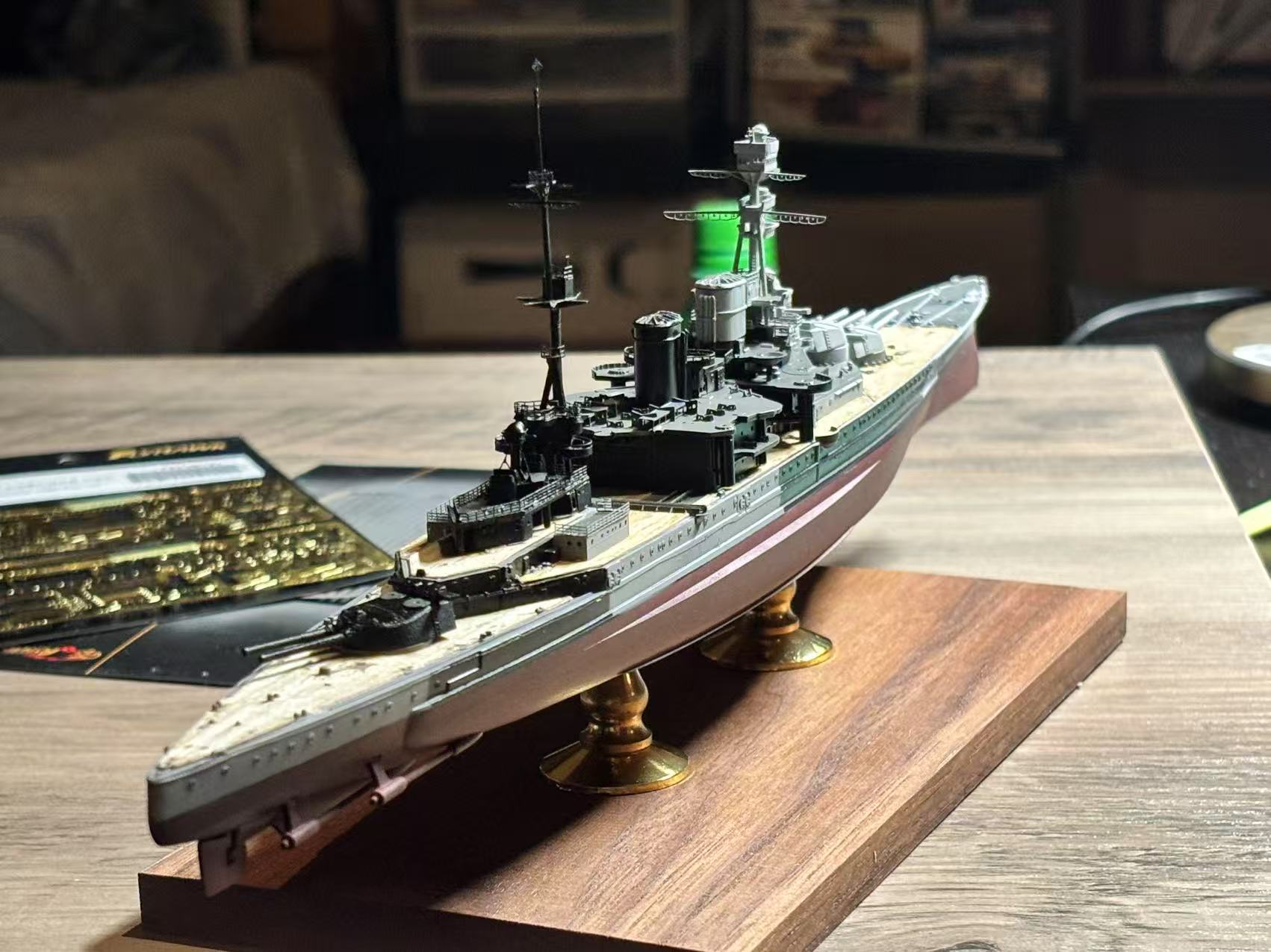 1:700 Trumpeter kit; Flyhawk photo-edge parts and metal barrels; Chuanyu Model Ship wooden deck.